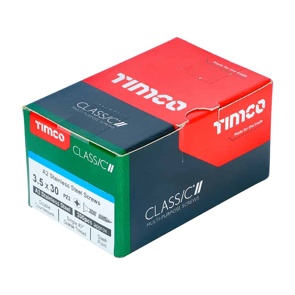 3.5 x 30 Classic Multi-Purpose Screws – PZ – Double Countersunk – A2 Stainless Steel