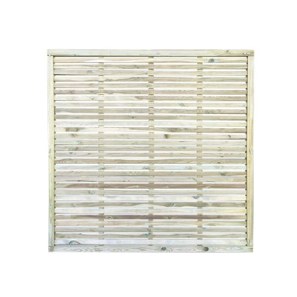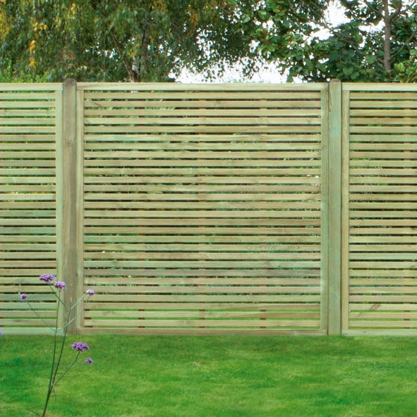 Slatted Fence Panel.  New to our Continental fence panel range with slats measuring 14mm x 45mm that have been machined with rounded edges.  The pressure treated slats are set with a 10mm gap allowing for air to flow freely through but still able to create a perfect boundary screen.
